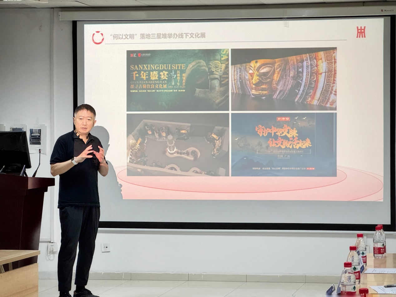 会上,冯宇总经理介绍了“央博”数字平台建设及业务发展情况。作为总台主动参与国家文化数字化战略、积极开展“工程化”布局的创新实践,“央博”数字平台致力于web3.0,通过思想+艺术+技术,创建全新宇宙空间、打造文化云社交场。他指出,“央博”数字平台将构筑新时代数字文化传播高地视为己任,规划出九条明确的业务线,包括EMP展馆园、品牌营销、教育研学、文创、文化活动、AIGC文旅票务、电商央博店、沉浸式数字展、技术服务输出。其中,“何以文明——中华文明探源工程成果数字艺术大展”运用数字技术构建移动化、交互式的时空框架,对10个中华文明探源工程重点考古遗址进行沉浸式复现。 未来要以区块链、元宇宙、人工智能等新一代信息技术为支撑,通过“四端并举”,即APP/Web、元宇宙空间、栏目与展厅/空间,实现全方位、多渠道的信息传播和互动体验,打造集数字化展示、沉浸式体验与互动交流等于一体的智能化平台。他表示,期待利用大模型和数字人技术能力,实现数字永生与自主交流,希望能够与西安交大有爱爱