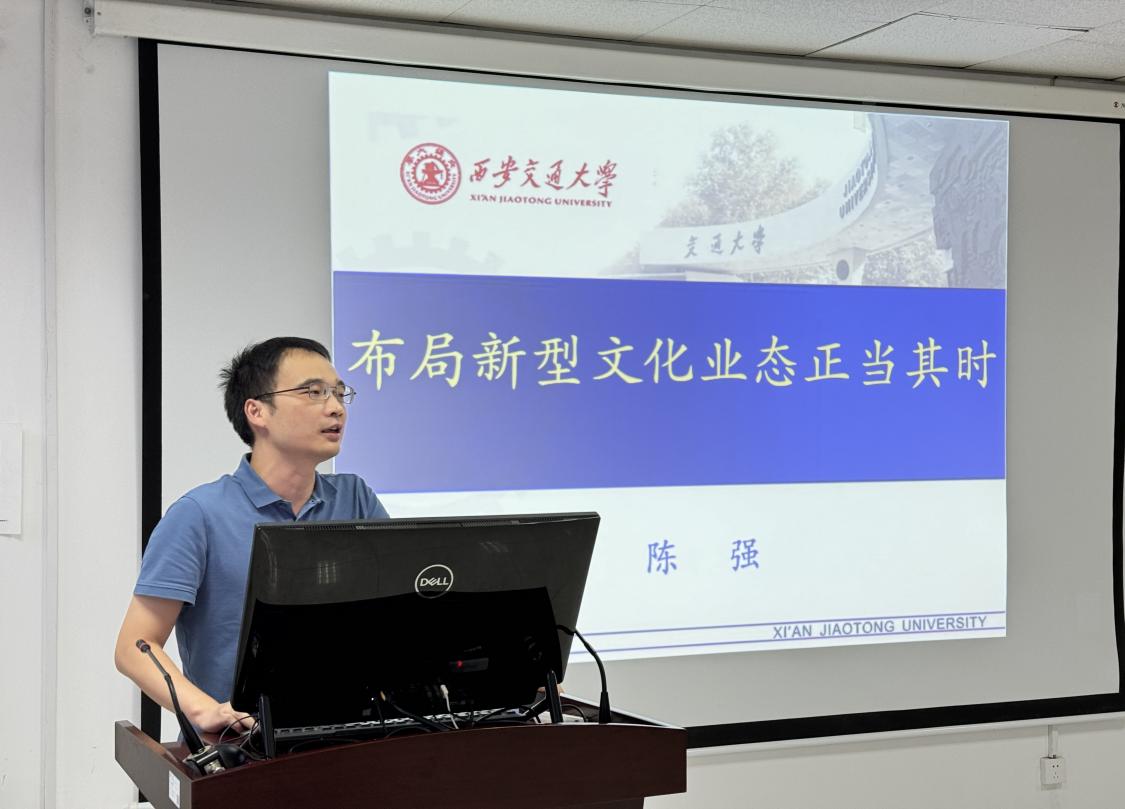陈强主任结合杨琳教授的领学,就“新型文化业态”进行分享。他指出,党的十八大以来,以习近平同志为核心的党中央多次强调,要加快培育新型文化业态和文化消费模式。文化新业态以文化科技融合为根本动力,以数字技术为基础支撑,以互联网为基础生产力,以“互联网+”为产业形态,以“文化+科技”为主要呈现形式,包括短视频(微短剧)、网络直播、数字创意、数字动漫、数字演播、数字印刷、数字艺术、数字娱乐、沉浸式展演、网络视听、数字出版、数字藏品、网络文学、电竞游戏等诸多样态。他强调,新媒体系按照学院部署加快布局新型文化业态研究与评价正当其时。