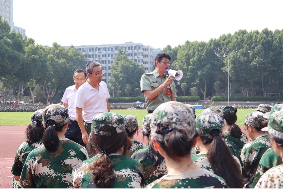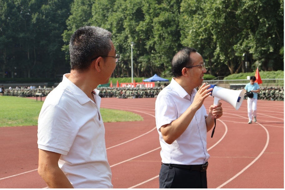吴锋则从身体和政治两个层面出发,建议同学们在军训期间要互帮互助,通过军训锻炼体魄,提高身体素质,以更好的状态迎接新学期的到来。同时,他鼓励同学们积极向党组织靠拢,递交入党申请书。他表示,无论是军训还是学习学生中遇到任何问题,都可以随时与老师们沟通,学院始终是同学们坚强的后盾。