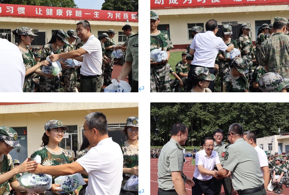随后,老师们亲手将精心准备的慰问礼包递给了每一位同学和教官,礼包中包括了除菌湿巾、润喉糖、芦荟凝胶等实用物品,种类繁多且贴心。这次慰问活动不仅展现了学院对军训的高度重视,更是体现了对新同学们的美好期许。