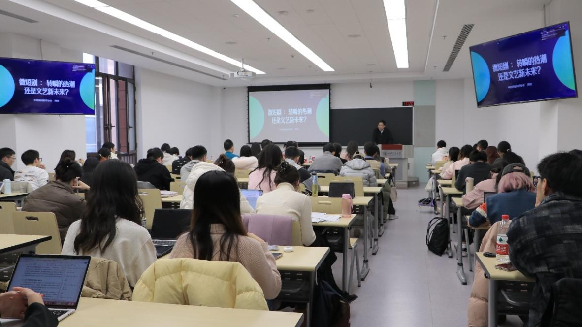 紧扣产业新动向,率先于《媒介变革与社会发展前沿系列讲座》校企共建课程中聚焦微短剧行业,准确捕捉行业热点。