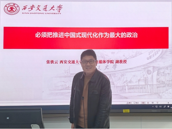 张铁云副教授解读了党的二十大报告以及二十届三中全会关于中国式现代化的重要论述,系统阐述了中国式现代化的理论框架、核心特征及其在实现中华民族伟大复兴中的战略地位。中国式现代化既有各国现代化的共同特征,又有中国特色,中国式现代化不是简单模仿西方模式,而是在继承中华优秀传统文化基础上,结合时代特点,探索出的一条符合中国实际的发展道路。中国式现代化破解了人类社会发展难题,拓展了发展中国家现代化途径,为人类探索现代化道路提供了新动力。把推进中国式现代化作为党的最大政治任务,旨在实现全面建成社会主义现代化强国和第二个百年奋斗目标,具有深远意义。从民族独立到改革开放再到党的十八大以来的创新突破,中国式现代化展现了中华民族的坚定战略定力和奋斗精神。中国式现代化是国家发展的必然要求,关乎中国特色社会主义事业的兴衰成败。