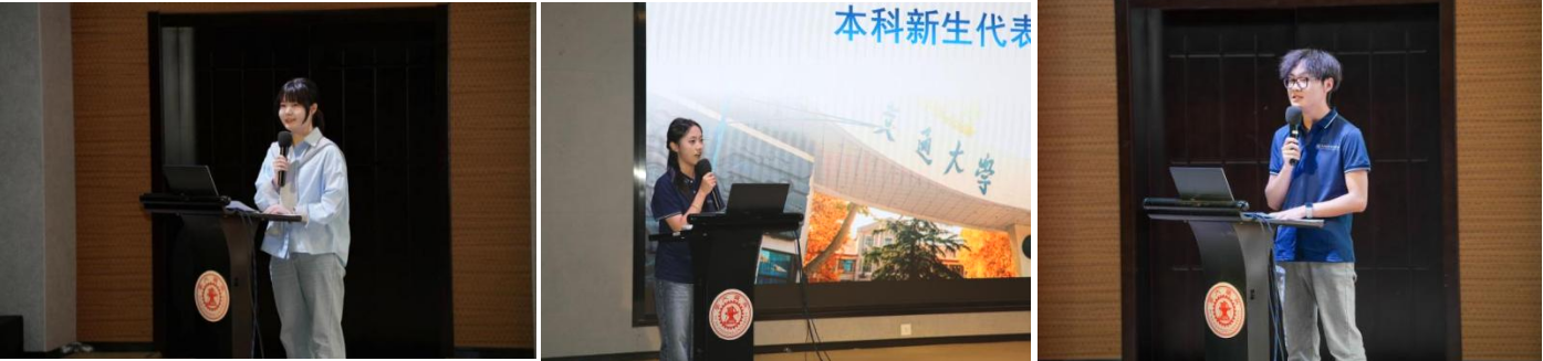2022级新媒体与社会治理专业博士生张杨一结合自身在学院的成长经历和学习体会,从明方向,以行动驱散迷茫;辨是非,于混沌中守真知;守初心,在专注中行稳致远三个方面进行分享发言,并祝愿大家在学院找准发展方向、发光发亮。本科生新生代表、2025级网络与新媒体专业郑可同学,研究生新生代表、2025级新闻与传播专业李浩同学在分享发言中分别总结过往学习成长经历,分享与交大初遇同行的感受体验、展望在学院未来的学习生活,期待能在交大书写属于自己的崭新篇章。