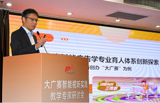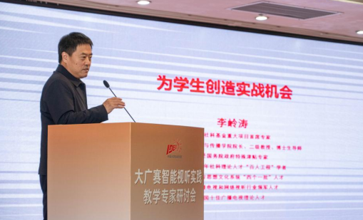 李岭涛作《大广赛网络视听竞赛为学生创造实战机会》的报告,指出当前高校新闻传媒教育存在偏重理论学习与模拟演练、学生技术素养培育不足、课堂教学滞后于一线实践等问题,应让学生从模拟演练走向真正实战,在真实的市场竞争和一线实践中获取直接经验。他分享了北京体育大学新闻传播学院的创新实践模式,为学生把握行业新趋势、适应新型传播模式及应用新技术设备提供教育指引。