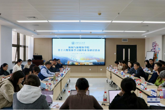 第十六期“学习强科”业务研讨活动在兴庆校区主楼E座1403会议室举行。本期活动特邀国家级高层次人才、北京师范大学新闻传播学院学术委员会主任喻国明教授围绕“智能时代主流媒体系统性变革的行动路线图”领学分享。学院领导班子、系(中心)负责人、教职工及博士生代表参加。汪文斌院长主持学习。