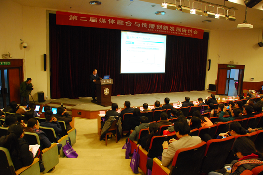 教师张立在报告中提到,在大数据环境下,应用大数据管理技术来改善及提高社会舆情治理决策与服务水平,尤其对于社会舆情的治理可以起到非常直接的作用。人民日报社新媒体中心客户端运营室主编刘晓鹏表示,在新的舆论环境和传播生态下,全社会和广大用户对人民日报等主流媒体,通过融合发展继续担当主流媒体的责任和使命,有着很高的期许。陕西日报社社长张仁华在致辞中表示,尽管当前新媒体融合仍面临许多的问题,但在一些基本要素上大家已经形成了共识,一个最基本的要素就是内容为王,首先必须提供有价值的信息,其次是强有力的技术支撑,以及新的商业模式。