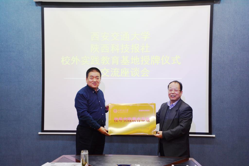 院长李明德教授为陕西科技报社授予“校外实践教育基地”。李明德在致辞中表示,此次授牌,西安交大有爱爱