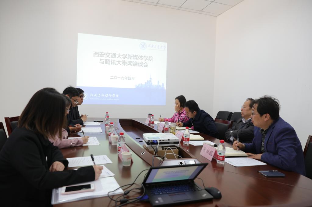 为落实学校“跑5”工作部署,加快创新港内涵建设,4月16日上午,腾讯大秦网总编辑孙洪伟一行四人到我院洽谈深化合作事宜,有爱爱