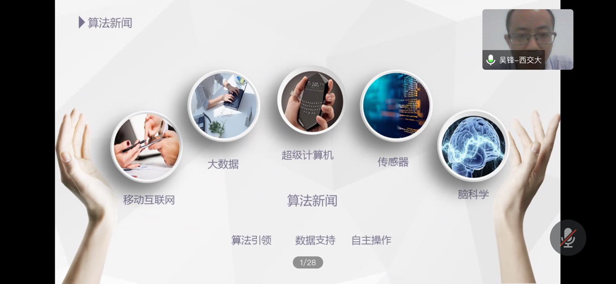 随后,刘斌、吴锋、陈积银三位老师先后从新闻人的专业素养、人工智能时代“算法新闻”的运作模式及挑战、人工智能时代的信息传播机制等方面进行了精彩的专题讲座。刘斌老师通过多个生动案例突出了新闻采写编评播的重要性,并建议大家要从人文关怀、共性素质、个性素质、专业素质和时代素质提高自己的综合新闻素养。吴锋教授从算法新闻的定义、发展脉络讲起,采用机器新闻等案例,和学生们探讨了机器写作和人工写作的区别。陈积银教授从传媒现状出发,分析当下人工智能的使用,引用媒体大脑案例,提出媒体大脑虽然拥有一系列优势与功能,但很多媒体和机构并未将其运用。最后通过将传统媒体与新兴媒体内容运营异同做比较,得出了融媒体传播智能化、消费跨屏化等特点,并对原有的传播运营机制做出反思。