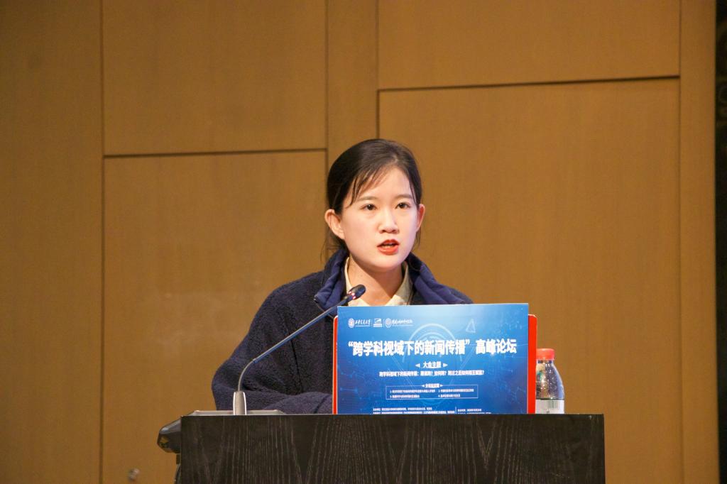 硕士研究生马欣然做了题为《守正创新:新文科背景下“网络与新媒体”专业人才培养路向》的发言。她认为目前的人才培养体系存在教育评估以科研为导向、课程设置止步于“姿态性”融合、专业自信与自觉缺位、培养目标“脸谱化”程度高等痛点问题,对此,学界和业界也从双师制、部校共建、校企合作、学科交叉、三三制改革等方面做出了探索。