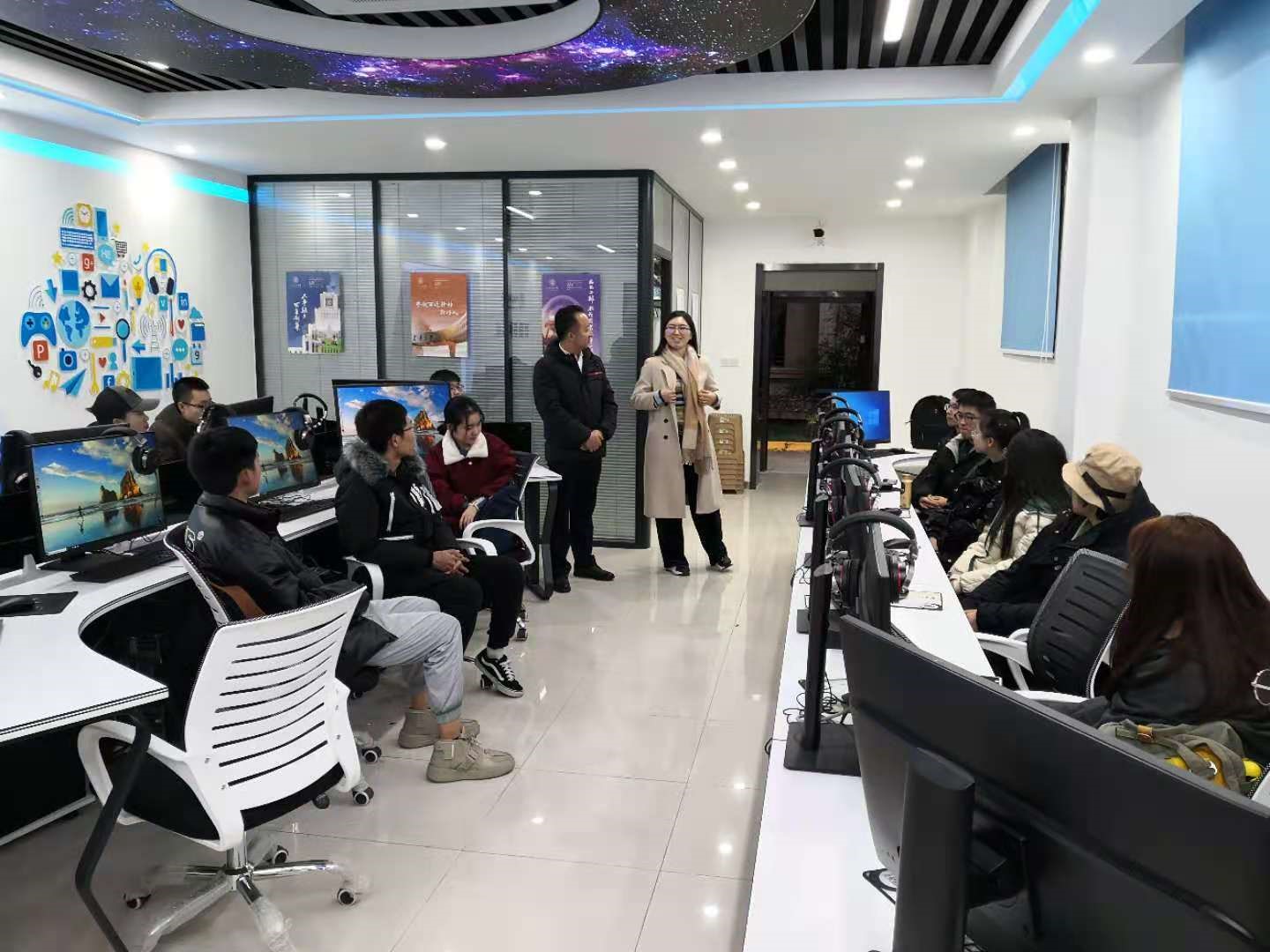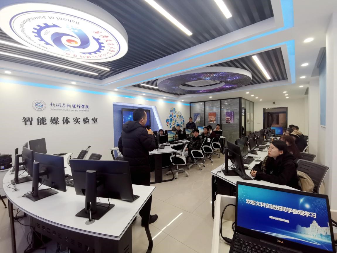 随后,张收鹏老师介绍了智能媒体实验室,他说实验室主要服务于网络与新媒体专业的本科教学,以新媒体内容生产+发布+运营为主,在大数据可视化与数据新闻、传媒类虚拟仿真教学、VR/AR内容创作、人工智能与传媒行业相融合等方面进行实验教学和实践探索。此外,有爱爱