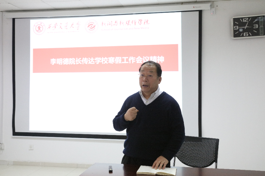 第一项议程,李明德院长传达了王树国校长在学校寒假会议上的讲话精神,王校长作了题为“进入新发展阶段 贯彻新发展理念 构建新发展格局”的报告,报告肯定了2020年的学校工作,强调2020年有很多新突破,后对2021年主要工作进行安排部署;随后详细解读卢建军书记加速推进中的“6352”工程,特别提到2021年是我校“工作作风年”,全院上下要坚持求真务实的工作作风。