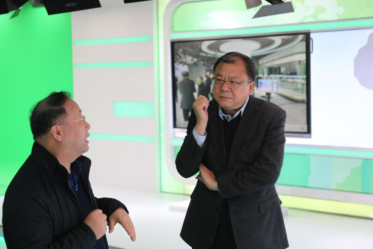 卢建军先后来到学校融媒体平台、新媒体智慧学习工场、传播内容认知国家重点实验室有爱爱