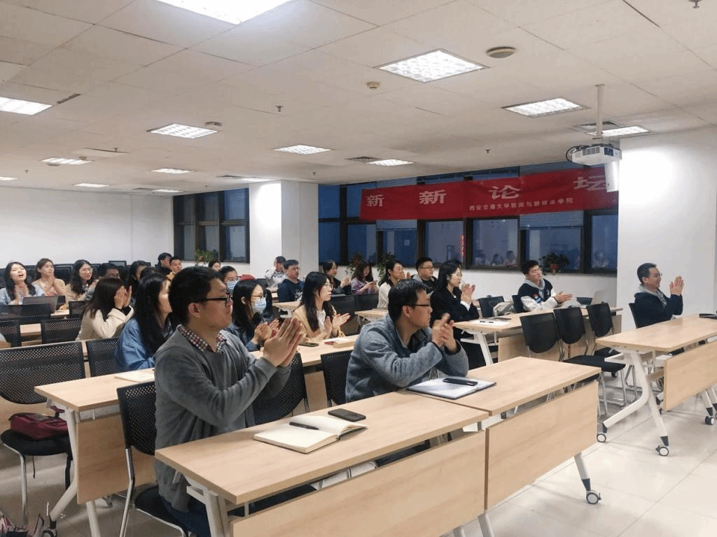 响应建设思想交大、智力交大的号召,于4月23日晚,在兴庆校区主楼E1104举行新新论坛第五十八讲。本次论坛邀请到《现代传播》编辑部副主任刘俊畅谈“融媒时代传媒艺术创作、传播和接受的三个新趋势”。学院副书记、青年教师、众多院内外学生等冒雨前来,热情参与。此次论坛由学院张宏邦副院长主持。