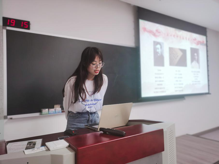 (硕0192班班长李肖燕做“五四精神传承有我”主题汇报)