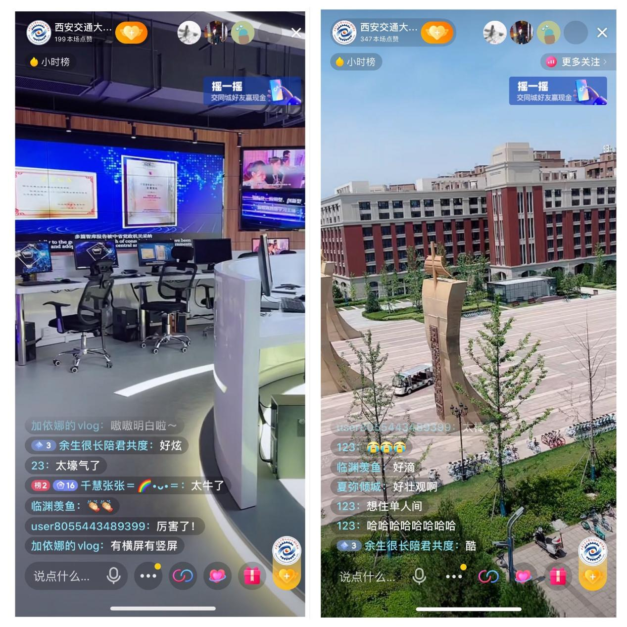 学术讲座后,孙雯老师通过抖音直播平台带领学生隔屏参观了新闻与新媒体研究院及智慧学习工场。同学们通过直播互动表示,西交大硬件软件都非常棒,为学生提供了优质实践平台及学习环境,新闻与新媒体研究院的智慧学习工场也充满科技感,很期待日后能来西交大有爱爱
