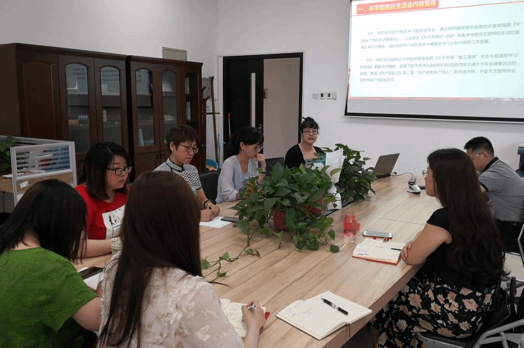 申楠首先总结了新闻系党支部上半年的整体工作情况,指出上半年新闻系支部自主开展了清明“云祭扫”“重走红色征程”“支部书记讲党课”“支部成员党史故事分享”等一系列学习教育活动,对系所教师的思想政治情况也进行摸底调研并形成了调研报告,总体上严格落实了学校党委的各项工作要求,也取得了一定成效。但同时也存着学习形式相对单一、效果有待持续巩固等问题,下一步支部将持续开展党史理论学习,不断丰富活动形式,加强与支部党员、其他党组织的沟通交流,进一步完成好基层党组织的各项工作任务。