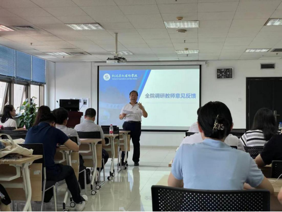 召开新学期全院教职工大会,集中反馈上半年学院教师调研意见,安排布置近期重点工作。党总支书记兼院长李明德主持会议。