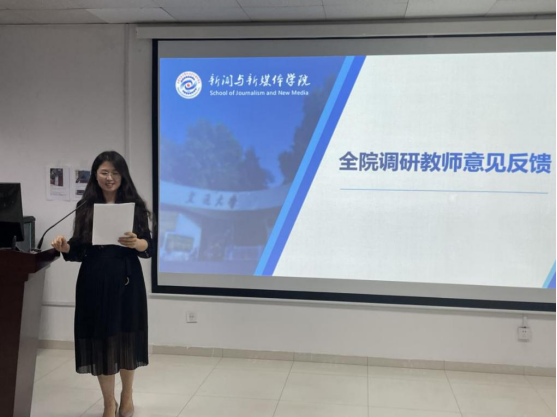 学院办公室主任范晓莹就人事制度和绩效考评等教师意见作了反馈,她详细解释了新副教授岗位的绩效考核变更情况,对目前的工作进展向老师们作了通报,同时也将学院每年度绩效考核流程及在绩效考核过程中承担社会服务的核算点向老师们作了解答,并提醒大家一定要按时关注学院宣传栏内容公示,保障个人切身利益。
