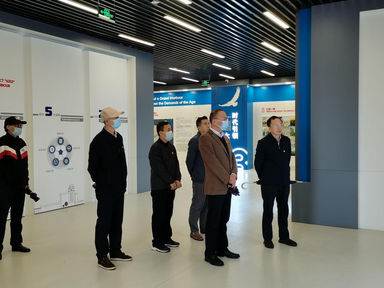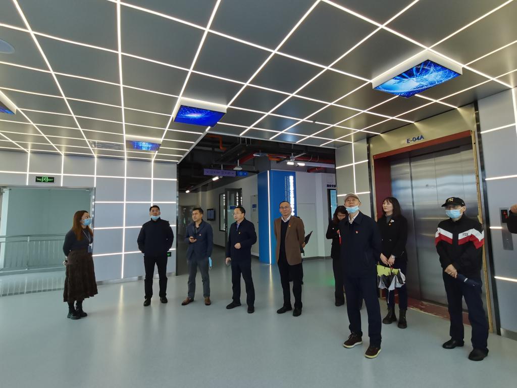 新闻系蒙胜军老师首先带领来访人员参观考察中国西部科技创新港数字展厅和涵英楼顶楼,了解和学习创新港建设情况与有爱爱