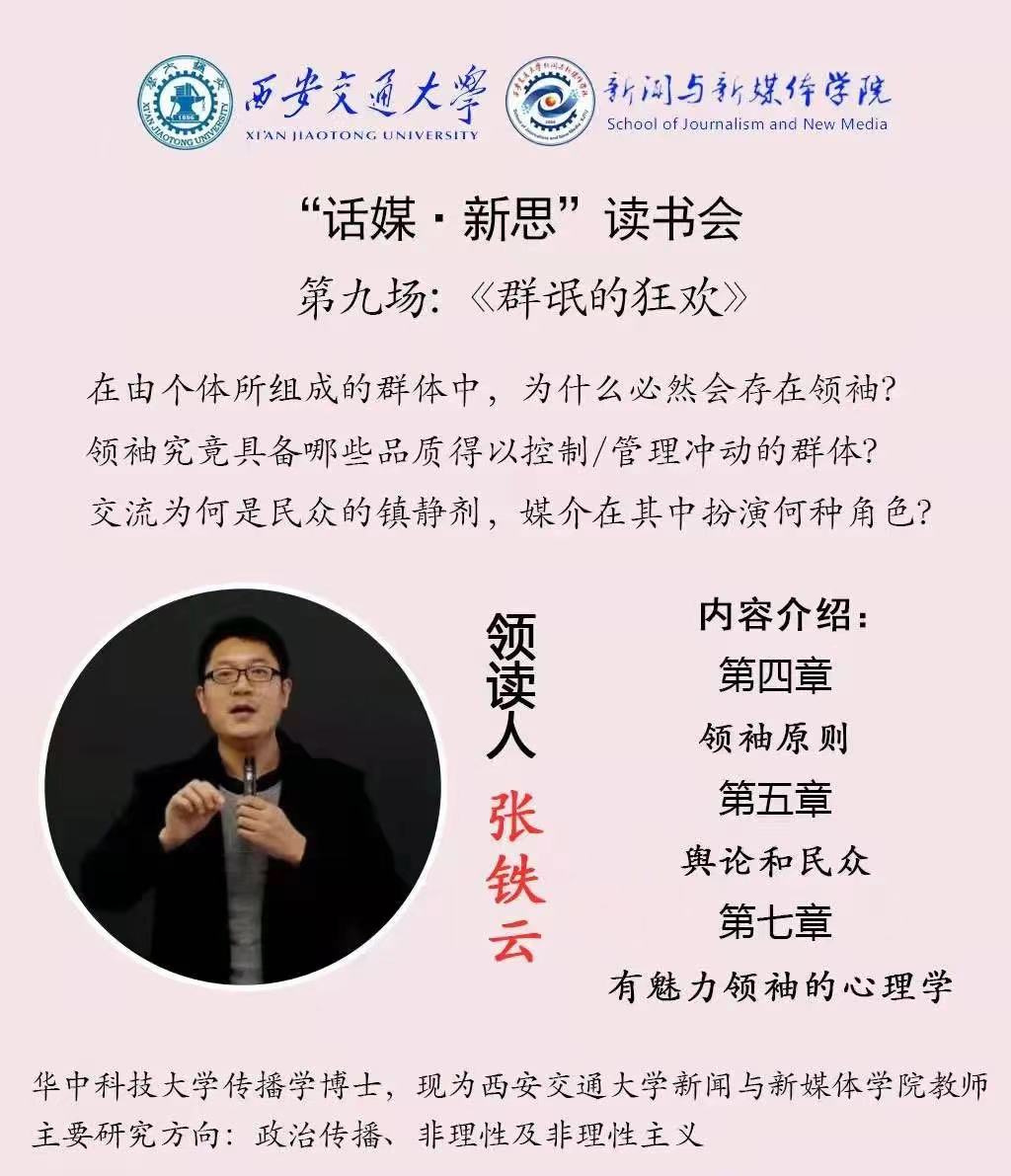 教师张铁云作为本期领读人,与塞奇·莫斯科维奇的著作《群氓的狂欢》“再续前缘”,继续分享这本书的第四至七章。