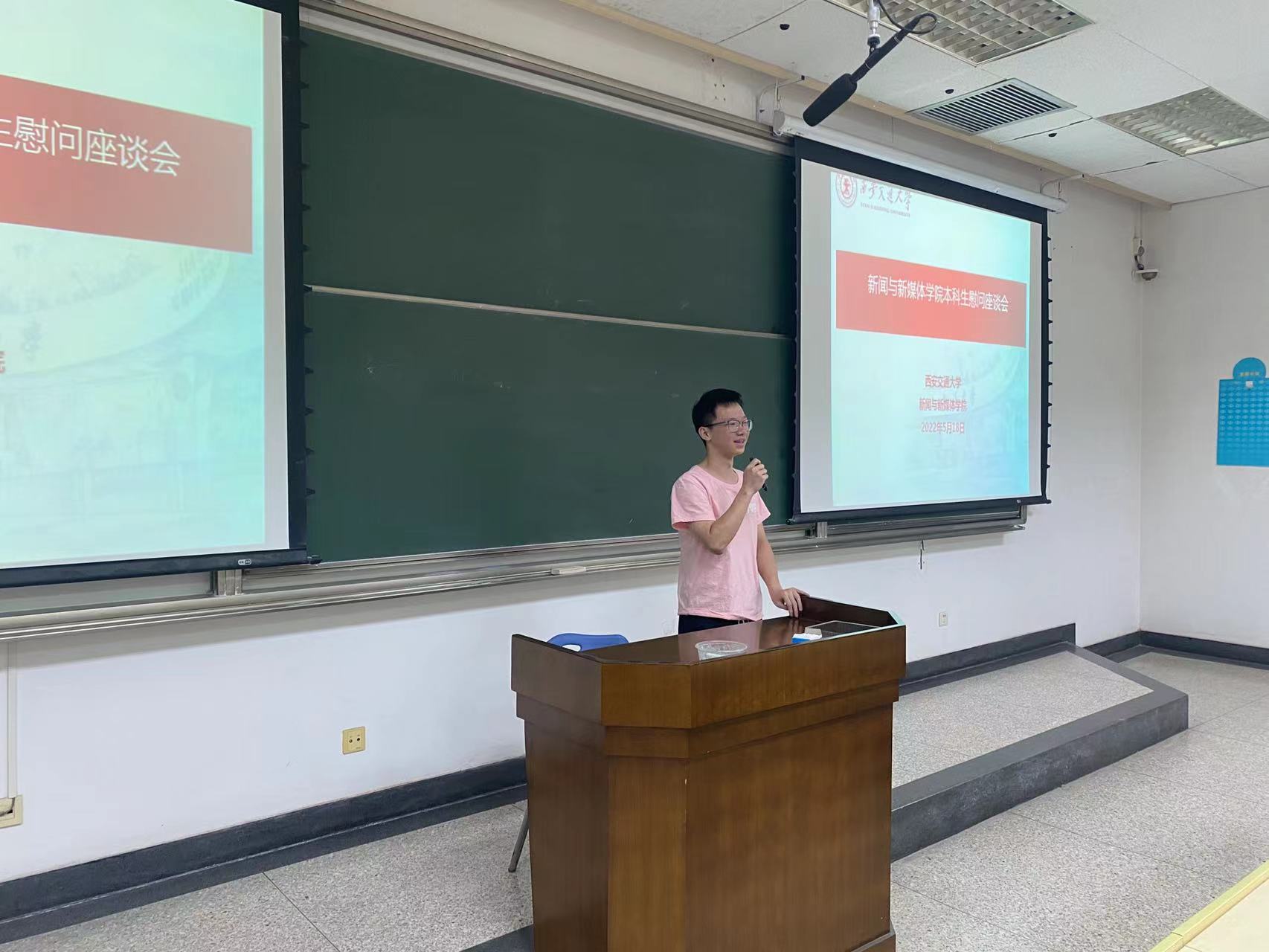 新媒体001班班长张文轩感慨道,这次慰问会见到了很多平时没有机会见到的老师们,从老师们的讲话中感受到了学院对大家的关怀和浓浓的爱意。