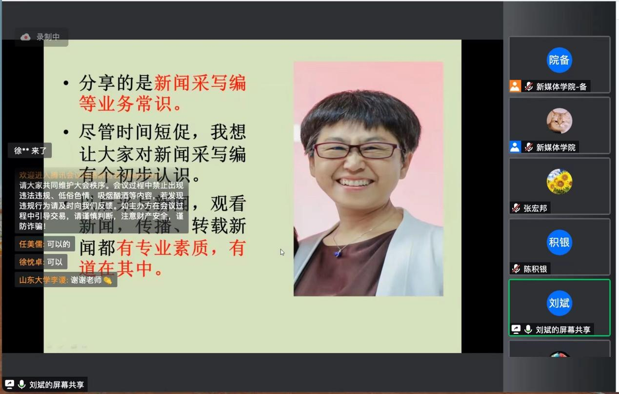 随后,刘斌老师、刘婵君副教授、陈积银教授三位老师先后从疫情案例中的新闻采写编、中国主流媒体建设性新闻实践和移动互联时代的信息传播等方面进行了精彩的专题讲座,带领营员们近距离感受学院老师的学术研究魅力,激发大家的学术研究兴趣。