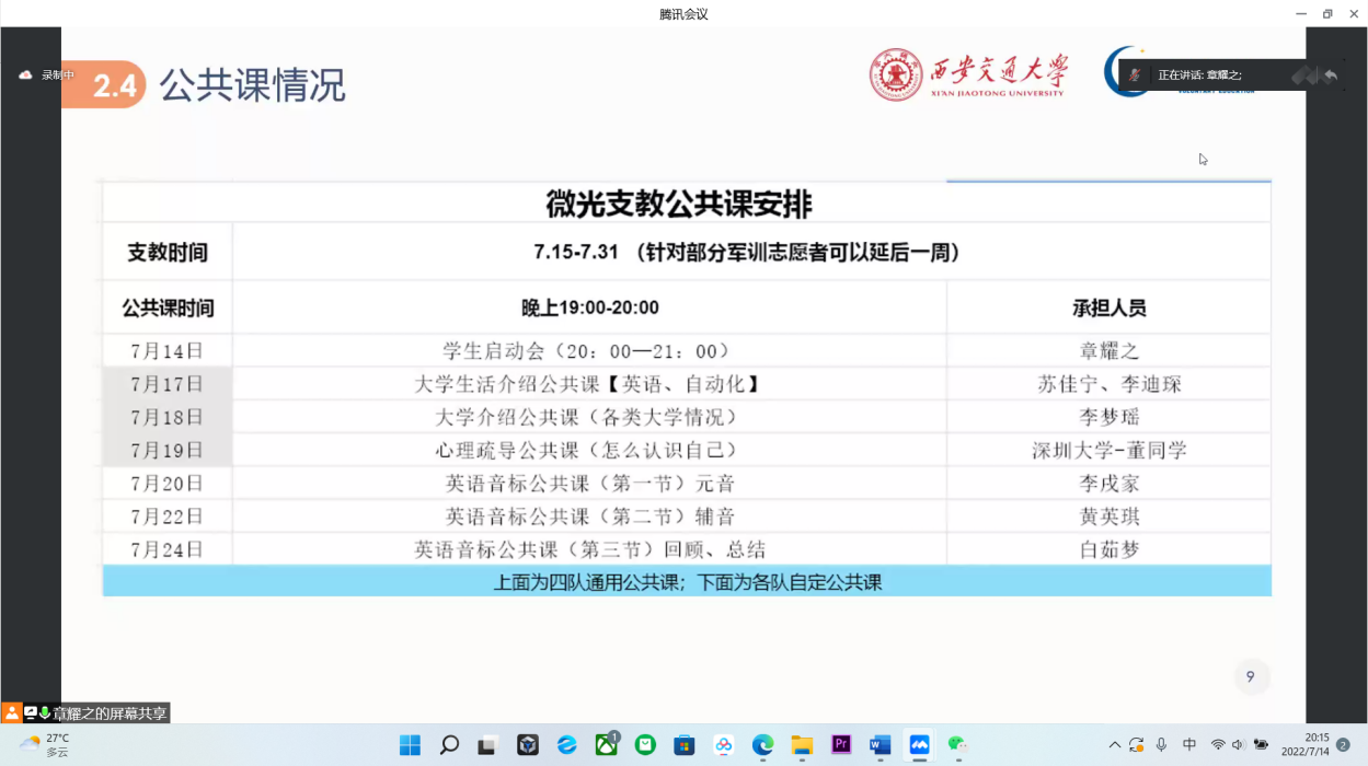 2022年7月10日和14日晚八点,第四期“微光”公益线上支教活动的志愿者启动会和学生启动会正式开启。会上,支教团详细介绍了本次活动的背景、具体流程和课程安排情况,以最直接的形式向乡镇同学传递最真诚的内容。