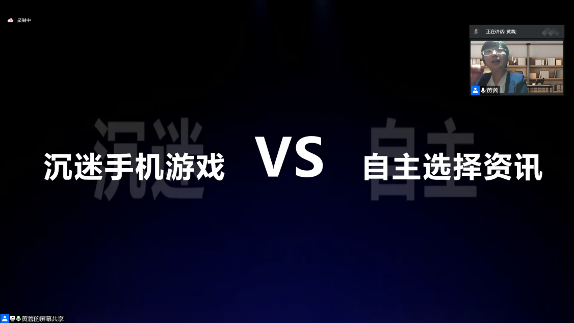 课上,黄蓉老师以平易通俗的语言讲述理论故事,并结合社会热点、身边实例,从网络的负面影响、网络的正面影响以及青少年网络使用现状三个方面,为大家介绍了儿童与青少年接受媒介素养教育的重要性。