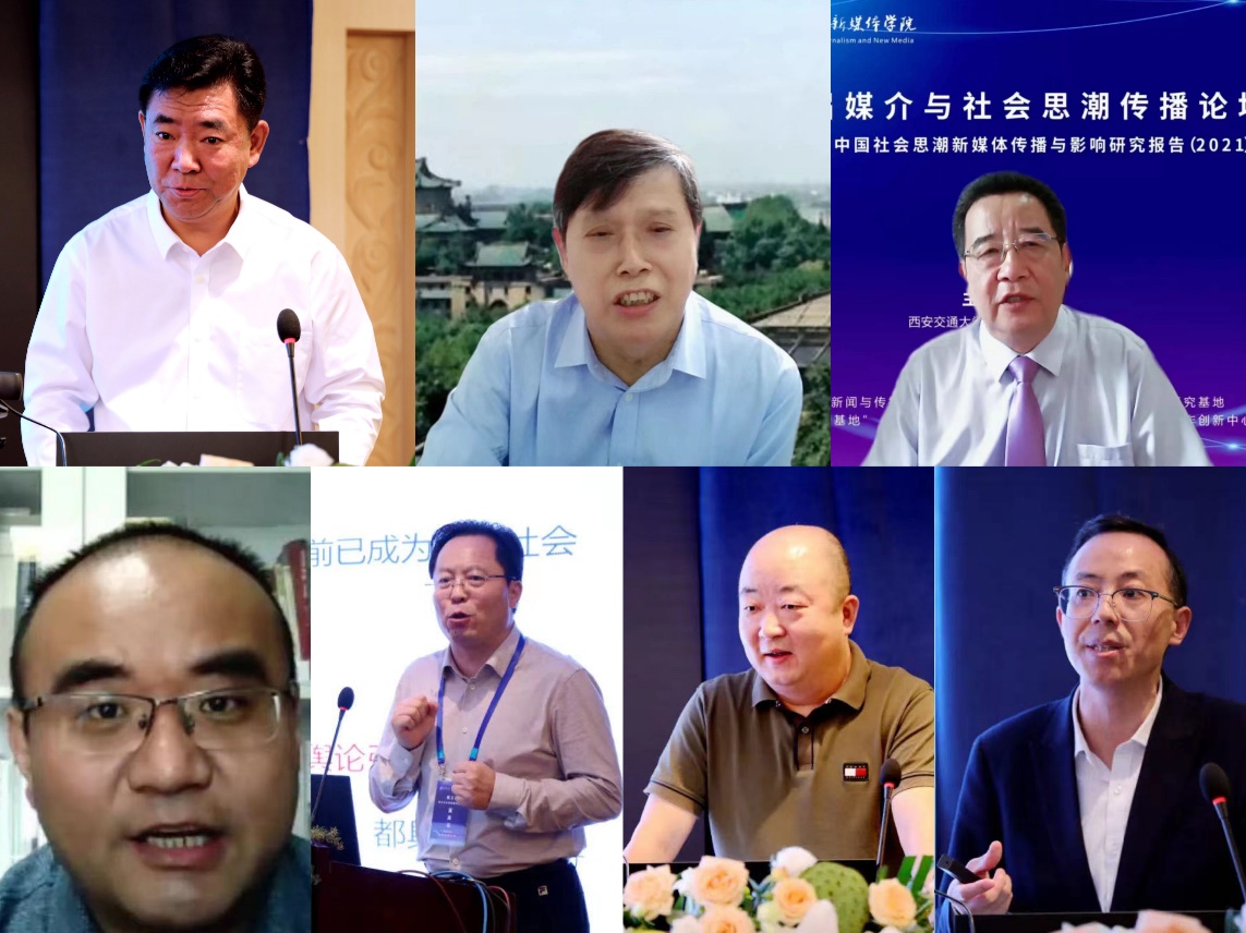 主办、新闻与传播研究所等协办的“第三届媒介与社会思潮传播论坛暨2021年中国社会思潮新媒体传播与影响报告发布会”在陕西高速神州酒店召开。 来自政府、业界、学界关于媒介与社会思潮传播领域的领导、学者、媒体人和各高校师生参加了论坛。 本次论坛共包括开幕式、嘉宾主旨演讲、2021年中国社会思潮新媒体传播与影响研究报告发布会”、自由发言、圆桌论坛、闭幕式六个部分,旨在通过马克思主义理论、新闻传播、社会学等多学科相互对话,汇聚政府、学界和业界跨界交流,以期从跨学科、多元协同治理视角出发为媒介与社会思潮传播研究拓展新空间。