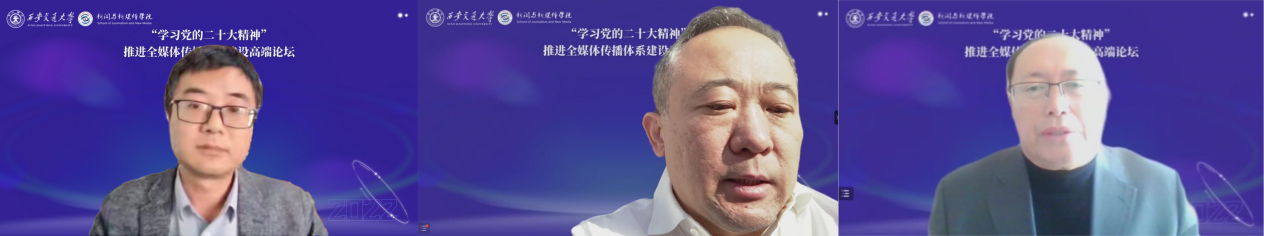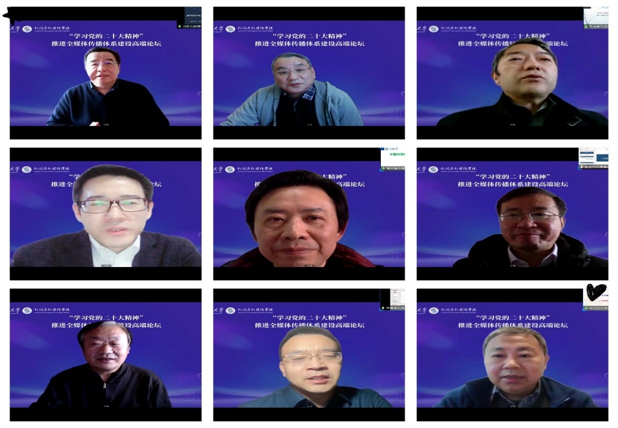 主办的“学习党的二十大精神,推进全媒体传播体系建设高端论坛”成功举行。来自全国60多所重点新闻传播学院的百余名知名学者、龙头企业和知名媒体代表相聚云端,围绕“加强全媒体传播体系建设”发表真知灼见,旨在凸显新时代媒体人使命担当,更好推进新型主流媒体建设,探讨全媒体传播人才培养模式创新,助力新闻传播学科建设高质量发展。