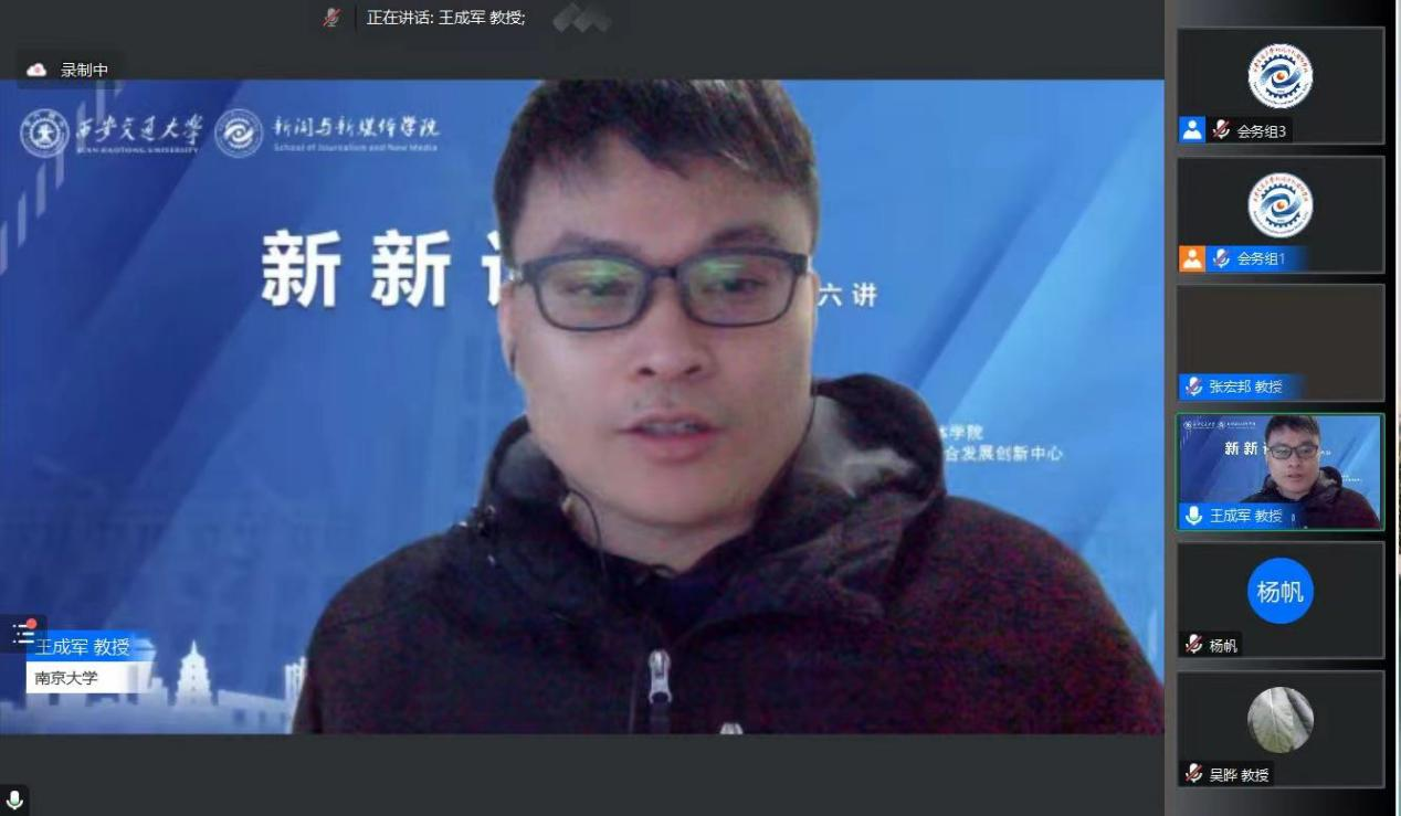 2023年3月3日晚,新新论坛第六十六讲在腾讯会议线上顺利举行。本次新新论坛特别邀请到了北京师范大学吴晔教授与南京大学王成军副教授。两位专家围绕计算传播学领域的前沿问题分别以“当传播学遇到数据”与“计算叙事”为主题开展了精彩讲座。论坛由有爱爱