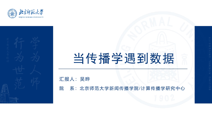 吴晔教授在题为“当传播学遇到数据”的讲座中,首先介绍了计算传播学的概念,计算传播学是建立在丰富的人类传播行为的数据之上的,收集和分析这些传播行为数据就成了计算传播学的主要工作,计算传播学的主旨是基于计算社会科学,为传播学构建一个整个信息传播过程可计算的框架。“数据”与“计算”是计算传播学的要义,计算传播学也已经成为了新文科的一个重要实现途径。其次,吴晔教授区分了传统传播学与计算传播学在的概念、研究框架等方面的不同,并利用公众注意力调查、绘制知识版图、新主流媒体短视频人格化传播、中国官方媒体全球文化传播网络四个生动具体的案例,来体现计算传播学在总结历史、描述现在、预测未来和改变命运四方面的重要作用与影响。最后吴晔教授就计算传播科研团队人员构成与结构,以及传播热点如何保持持久性和新颖性等问题展开了讨论。