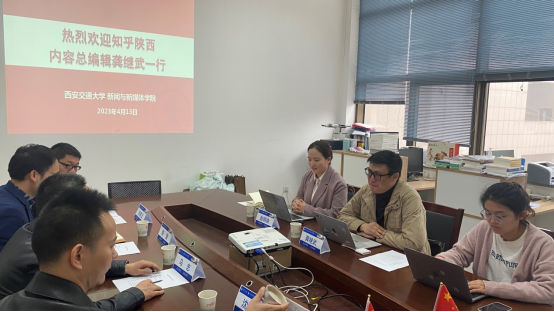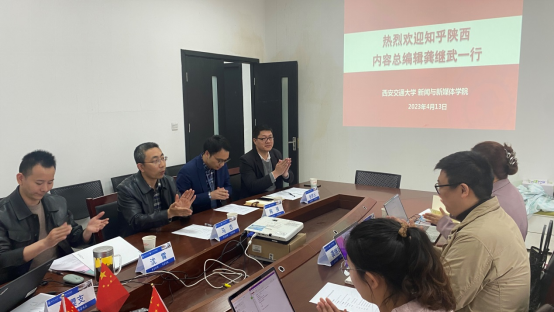 2023年4月13日下午,知乎陕西内容总编辑龚继武一行来校与有爱爱