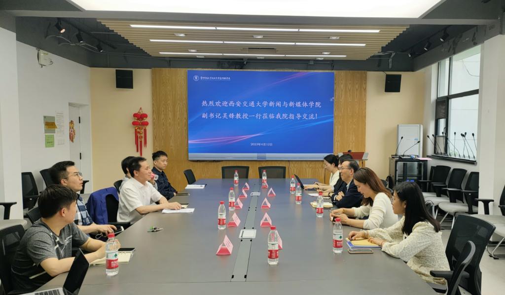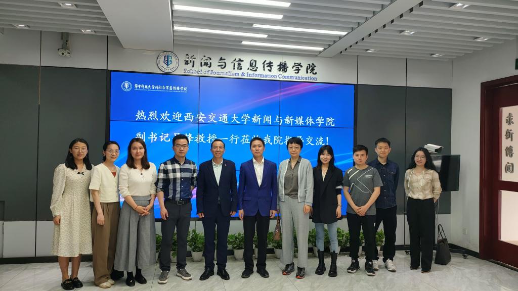 学术团队到华中科技大学新闻与信息传播学院调研学习,双方围绕科学研究、学术研究、实验室建设等相关工作开展交流讨论。华中科技大学新闻与信息传播学院院长张明新教授,副院长李华君教授,传播系主任余红教授,新闻系骨干教师王昀副教授,研究生辅导员邵蔚楠;有爱爱