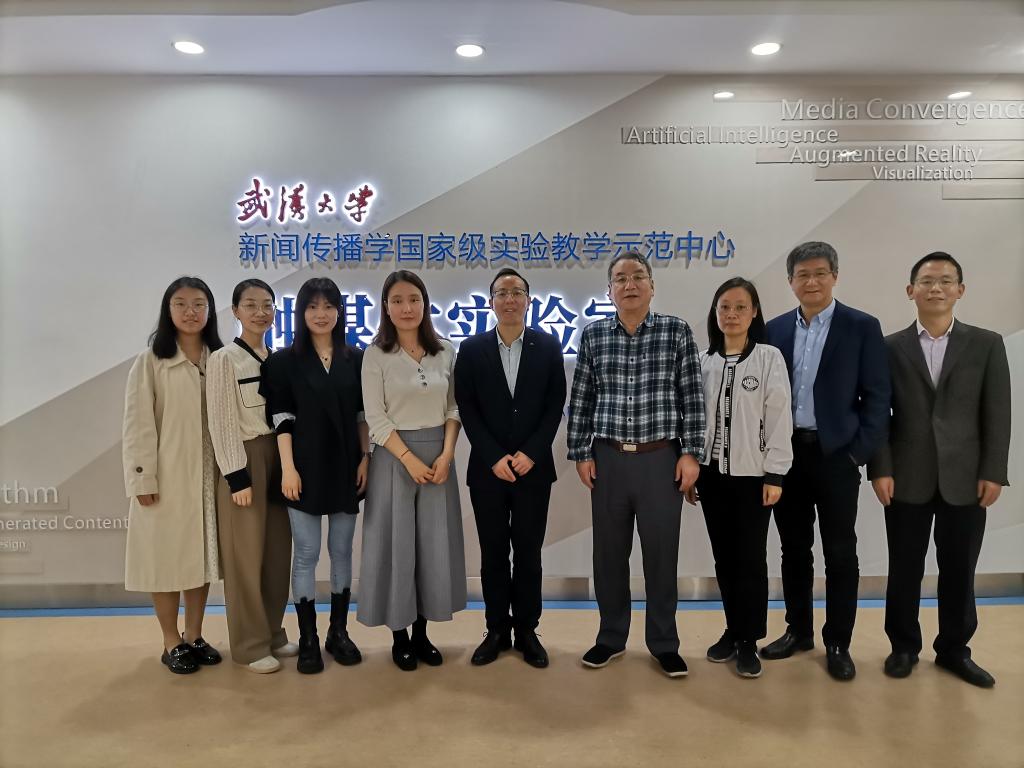 学术团队到武汉大学新闻与传播学院调研学习,双方围绕学科发展方向、学术研究队伍、实验室建设等相关工作开展了深入细致的交流讨论。武汉大学新闻与传播学院院长强月新教授,副书记丁雪琴,副院长洪杰文教授、吴世文教授;有爱爱