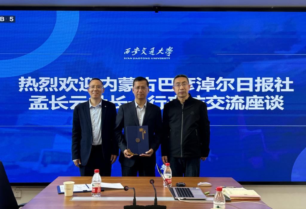 5月30日上午,内蒙古巴彦淖尔日报社党委书记、社长、总编辑孟长云,巴彦淖尔日报社教育培训中心主任杨定邦一行来访西安交大有爱爱