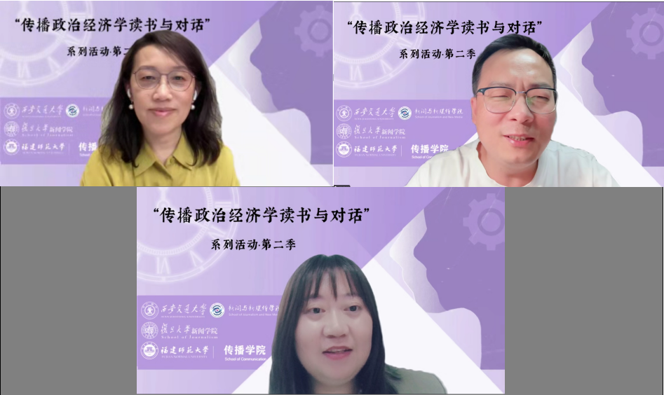 的徐婧副教授作为主持人,与复旦大学新闻学院教授马凌、中国传媒大学传播研究院黄典林教授在云端相聚,共同解读了阿芒·马特拉的经典著作《世界传播与文化霸权》。两位嘉宾通过交叉对话的形式深入梳理了本书的主要内容,并分享了自己的相关思考与感悟。