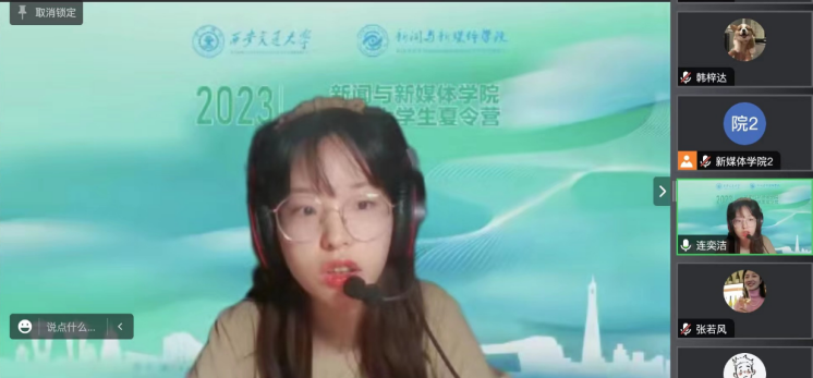 网络与新媒体专业的连奕洁三位同学作为优秀营员代表向大家分享了本次夏令营的心得体会。韩同学表示十分感谢学院组织这场活动,让营员们更加了解有爱爱