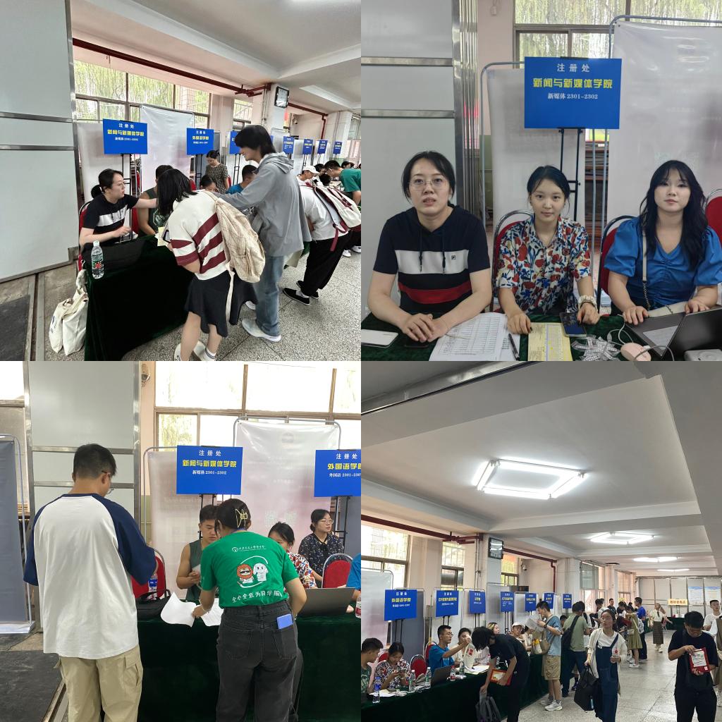副书记吴锋教授、新媒体2301班班主任朱利平、新媒体2302班班主任刘丹前往兴庆校区南门迎新一线,与书院一同迎接新生。