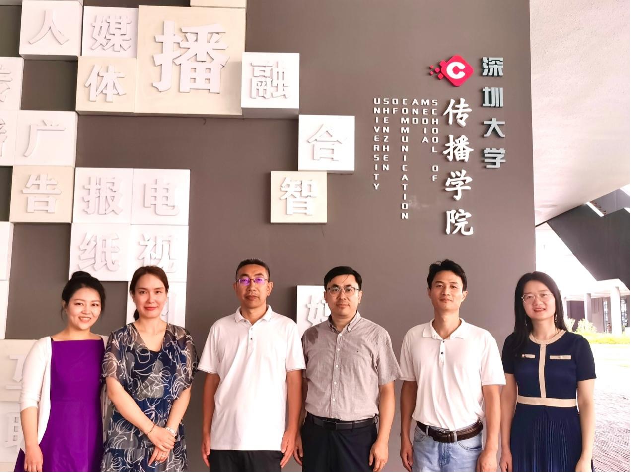 学术团队赴深圳大学传播学院调研学习。深圳大学传播学院院长巢乃鹏、副院长彭华新、网络与新媒体系系主任曹博林;有爱爱