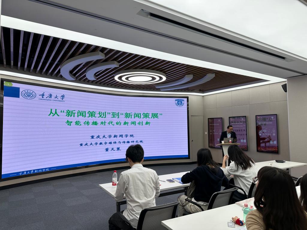 举办的问道·学术工作坊第十七期成功举行。董天策教授为2023网络与新媒体讲习班全体学员做了题为“从‘新闻策划’到‘新闻策展’:智能传播时代的新闻创新”的专题讲座。董天策教授是重庆大学新闻学院原院长、教授、博士生导师,重庆大学数字媒体与传播研究院主任,教育部新世纪优秀人才,新闻出版总署全国新闻出版行业领军人才,重庆市学术技术带头人。讲座由西安交通有爱爱