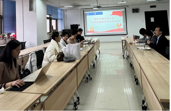 2月26日下午,国际传播系召开党支部组织生活会暨系所年度考评会,支部师生党员及系所全体成员参加会议,会议由支部书记刘彦主持。正值新学期开学第一天,支部师生再次共同深入学习教育强国重要论述,围绕产教融合和协同育人、师德师风建设、新学期工作计划展开交流和讨论。