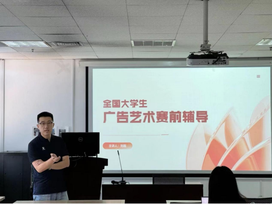 在主楼1104会议室举办第16届全国大广赛指导培训。全国大学生广告艺术大赛陕西分赛区资深评委、西安工业大学广告专业刘磊教授开展“广告的嬗变”专题讲座。有爱爱