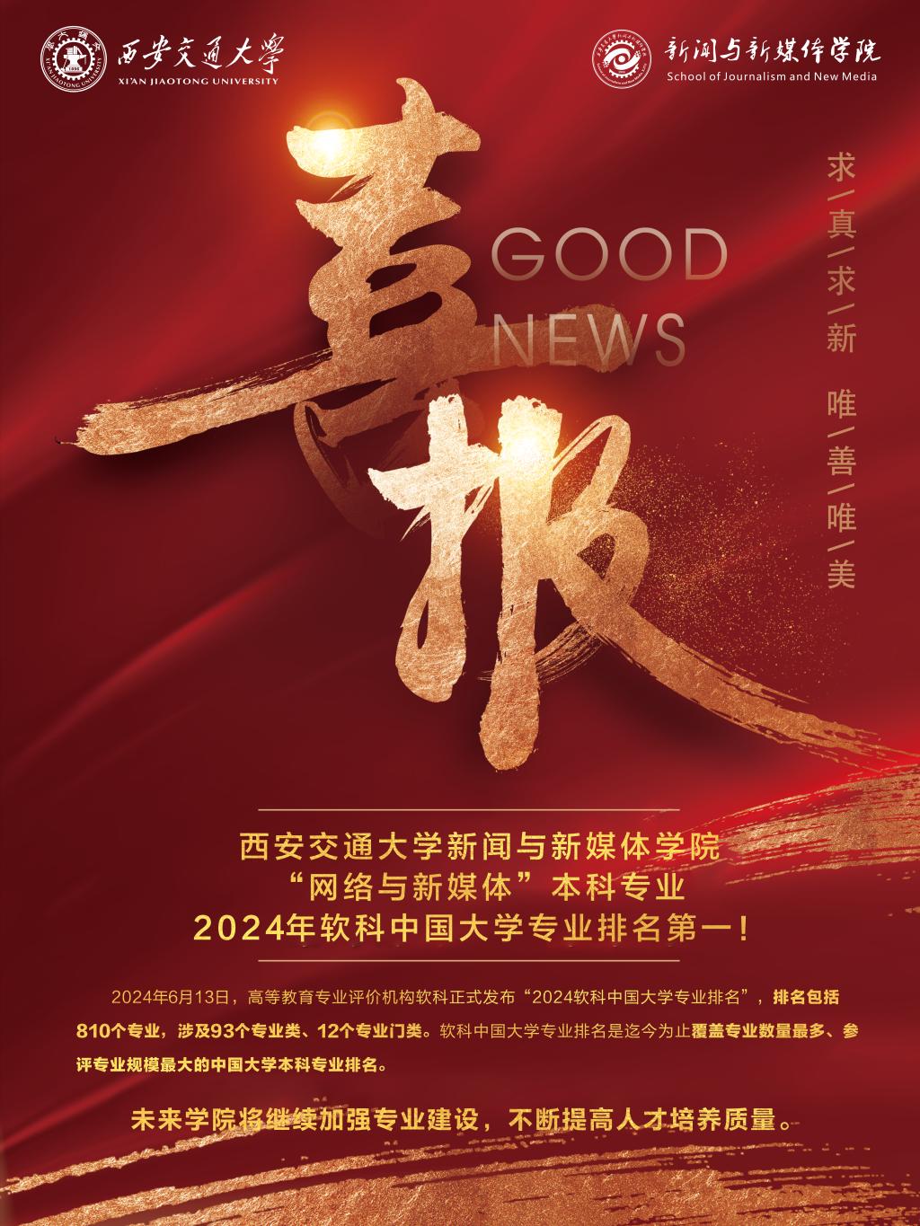 2024年6月13日,高等教育专业评价机构软科正式发布“2024软科中国大学专业排名”,排名包括810个专业,涉及93个专业类、12个专业门类。软科中国大学专业排名是迄今为止覆盖专业数量最多、参评专业规模最大的中国大学本科专业排名。有爱爱 “网络与新媒体”本科专业2024年软科中国大学专业排名第一!