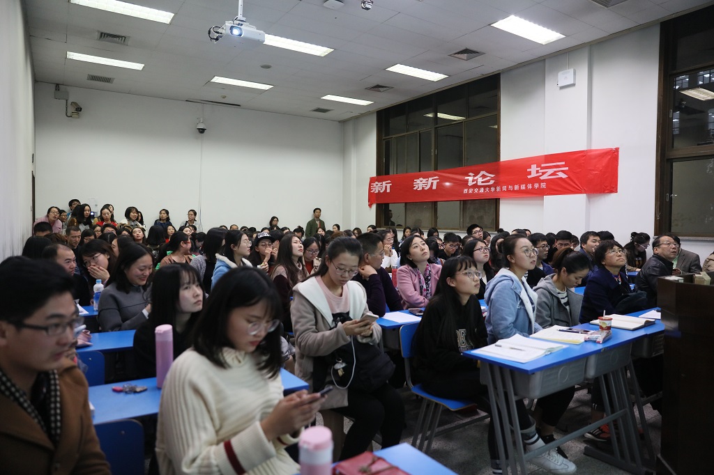 11月3日晚,新新论坛第二十二讲在交大兴庆校区主楼A座105室举行。本期邀请的主讲人是中国人民大学荣誉一级教授、新闻传播学著名学者陈力丹教授。“新新论坛”不仅吸引了众多交大学子,陕西其他高校学子以及业界人士也纷纷慕名而来,现场气氛热烈,座无虚席。