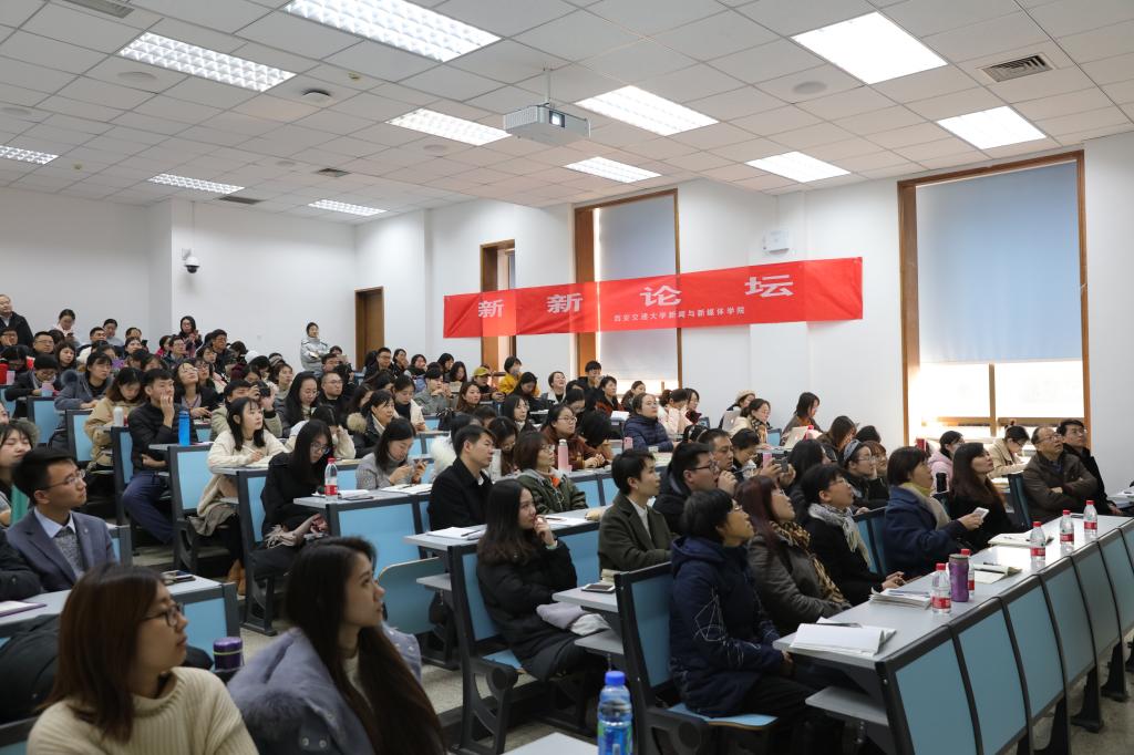 12月13日下午,新新论坛第三十三讲在交大兴庆校区主楼C座206室举行。本期邀请的主讲嘉宾为中国人民大学荣誉一级教授、新闻传播学著名学者陈力丹教授。陈力丹教授引用大量的文献资料与新闻案例,为现场师生们带来了以“将习近平总书记以人民为中心的工作导向落实到新闻实践中”为题的学术盛宴。本场论坛不仅吸引了众多交大学子,陕西其他高校学子以及业界人士也纷纷慕名而来。
