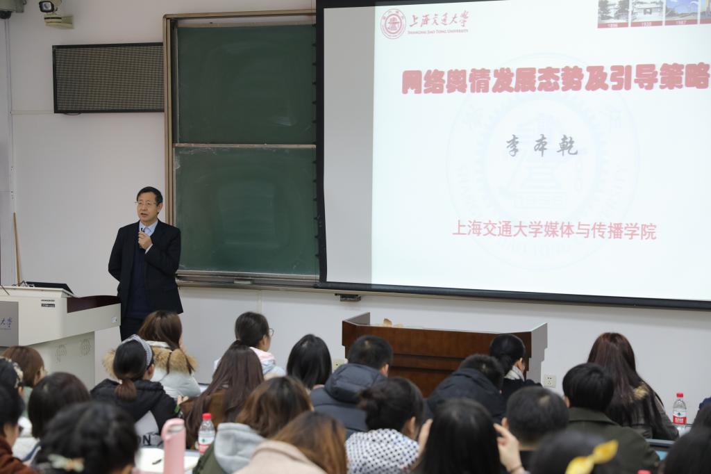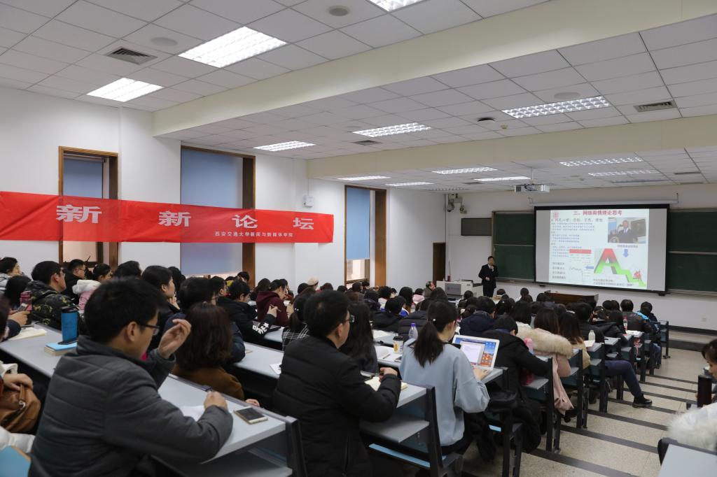 12月13日下午,新新论坛第三十四讲在交大兴庆校区主楼C座206室举行。本期邀请的主讲嘉宾为上海交通大学媒体与传播学院院长李本乾教授。李本乾教授在其学术研究课题与相关案例的基础上,以“网络舆情的发展态势及引导策略”为题侃侃而谈,为在场师生带来了一场不可多得的学术盛宴。本场论坛不仅吸引了众多交大学子前来参加,其他高校师生及业界人士也纷纷慕名而来,现场气氛热烈,座无虚席。