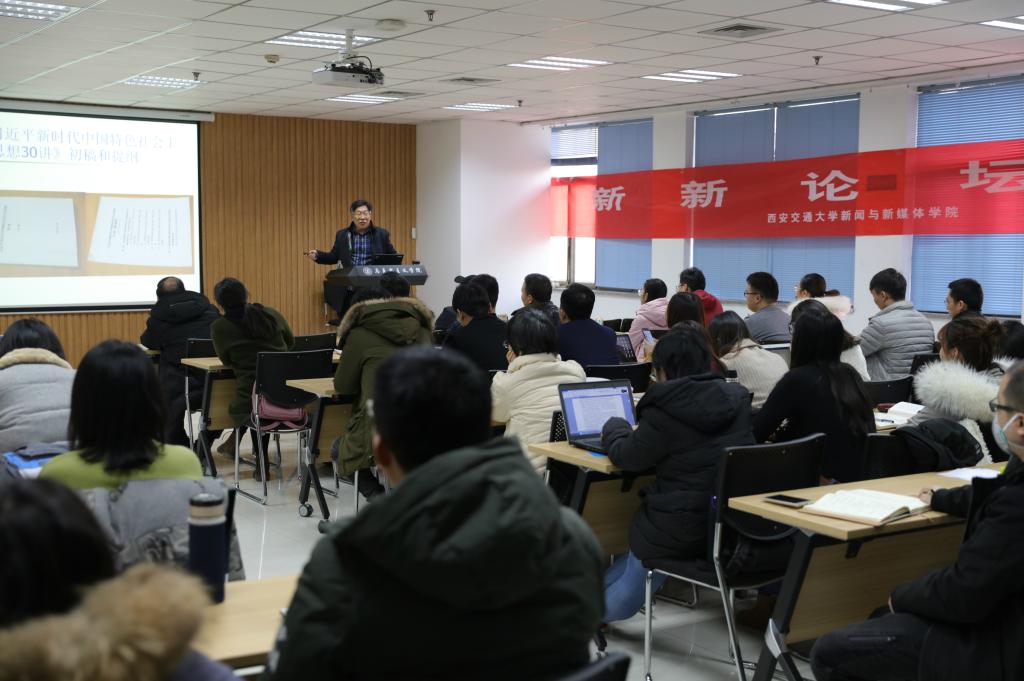 12月15日下午,新新论坛第三十六讲在交大兴庆校区主楼E座505室举行。清华大学马克思主义学院教学委员会主任、博士生导师刘书林教授带来以“近期意识形态领域突出问题分析”为题的精彩报告,西安交大马克思主义学院前院长王宏波教授等出席本次论坛,西安交大有爱爱