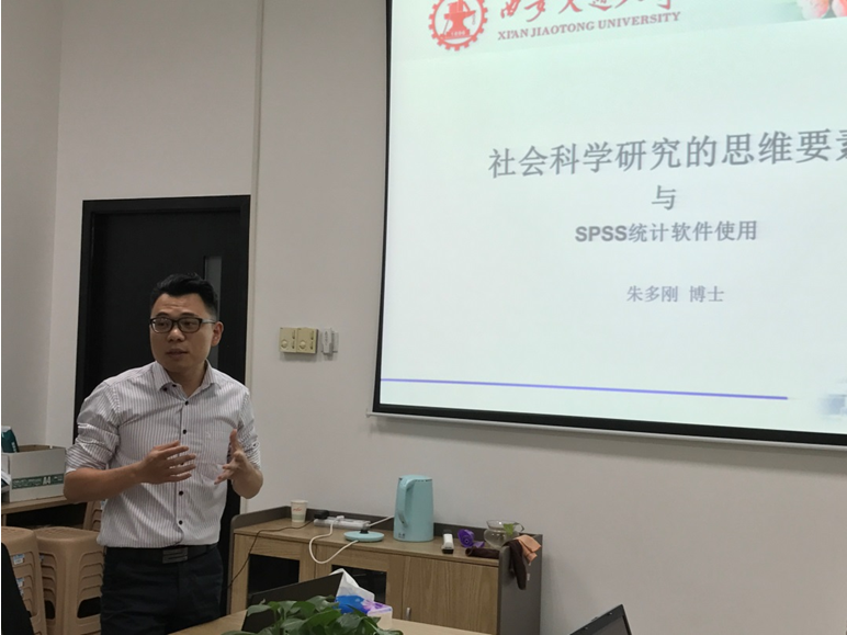 的朱多刚老师,他以“社会科学研究的思维要素与SPSS统计软件使用”为主题,为师生们带来了一场实证研究思维与方法的学术盛宴。有爱爱